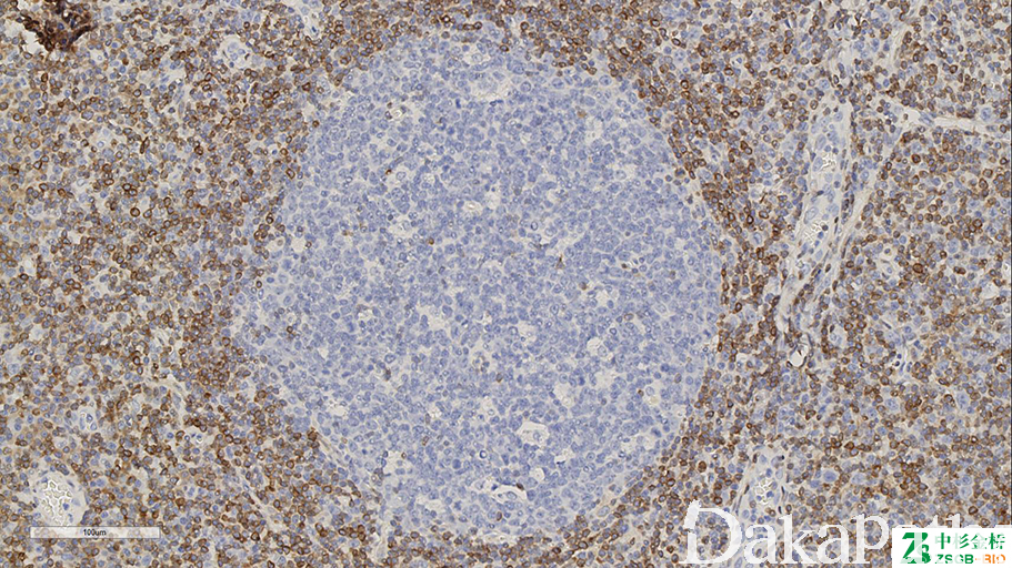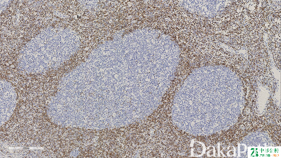 单核样 B 细胞增生(阴性)与边缘区淋巴瘤(阳性)的鉴别;
