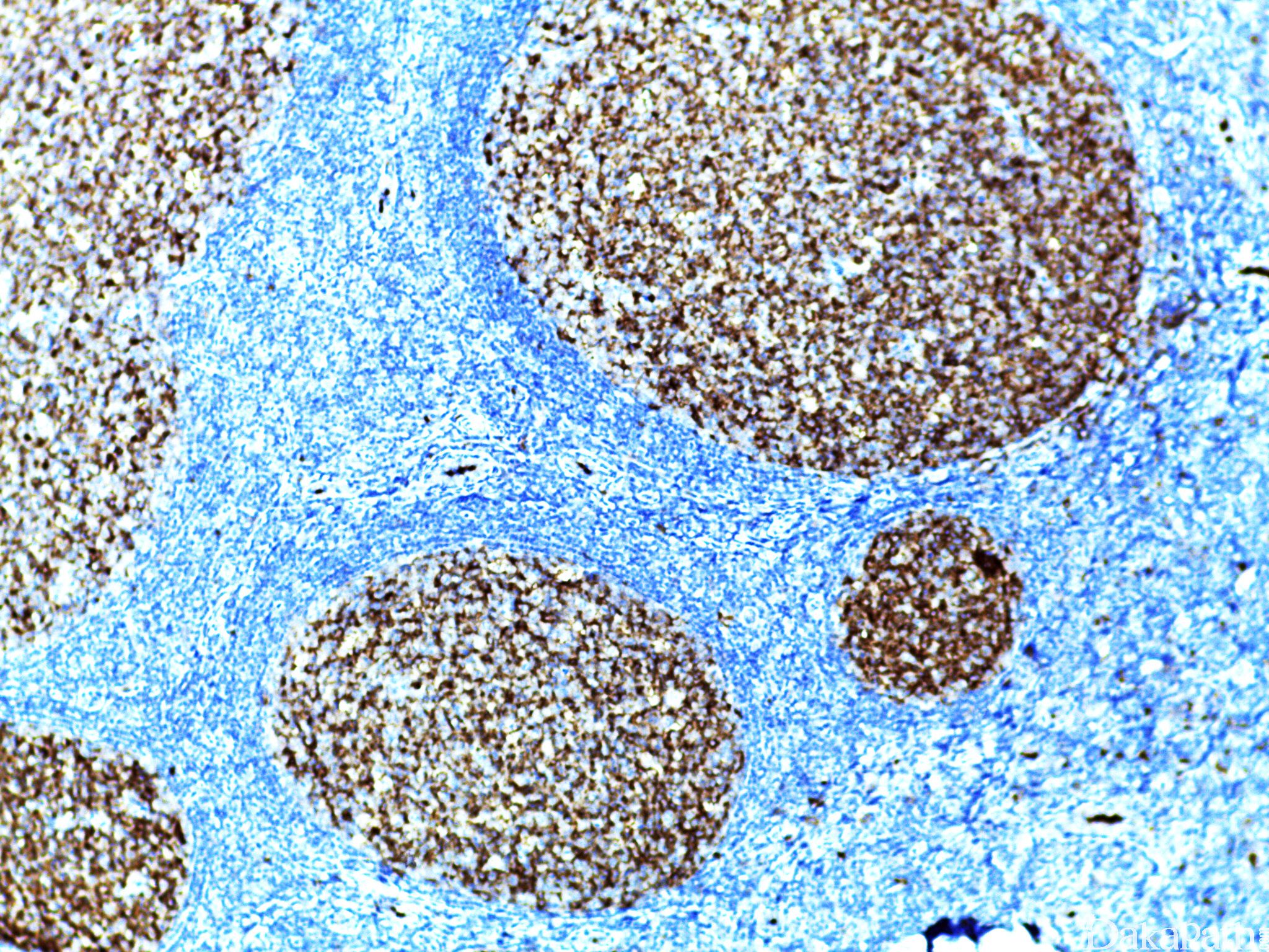 淋巴造血细胞肿瘤中主要标记急性 B 淋巴母细胞白血病/淋巴瘤、血管免疫母细胞性 T 细胞淋巴瘤、生发中心源性淋巴瘤;