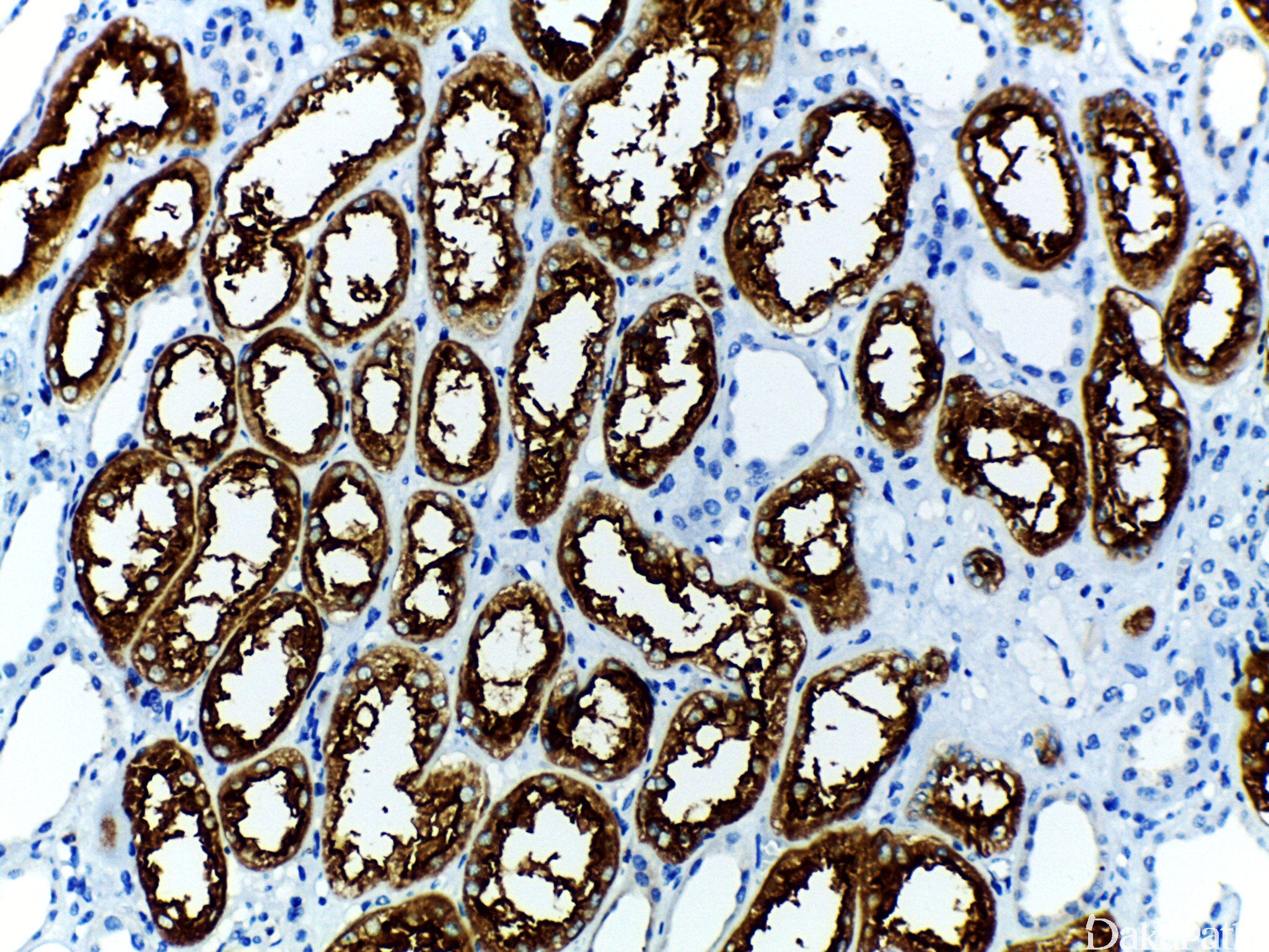 7. 卵巢透明细胞癌、Wolffian 肿瘤、肌上皮细胞及肿瘤、毛细胆管、胰腺实性假乳头状肿瘤、肠上皮、肾小管近曲小管上皮的刷状缘及其来源肿瘤(透明细胞癌、乳头状癌等)可阳性表达。