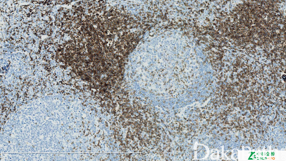 T 细胞淋巴瘤的诊断,为 T 细胞最特异的抗体。