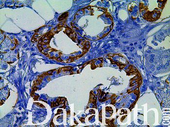 有时阳性(<55%,≥35%的病例阳性): 肌上皮癌、上皮样间皮瘤、乳腺化生性癌、涎腺导管腺癌、肺贴壁型腺癌、黏液表皮样癌、上皮样肉瘤、间变性脑膜瘤、乳腺大汗腺型导管原位癌、脑膜瘤,砂粒体型、尿路上皮癌