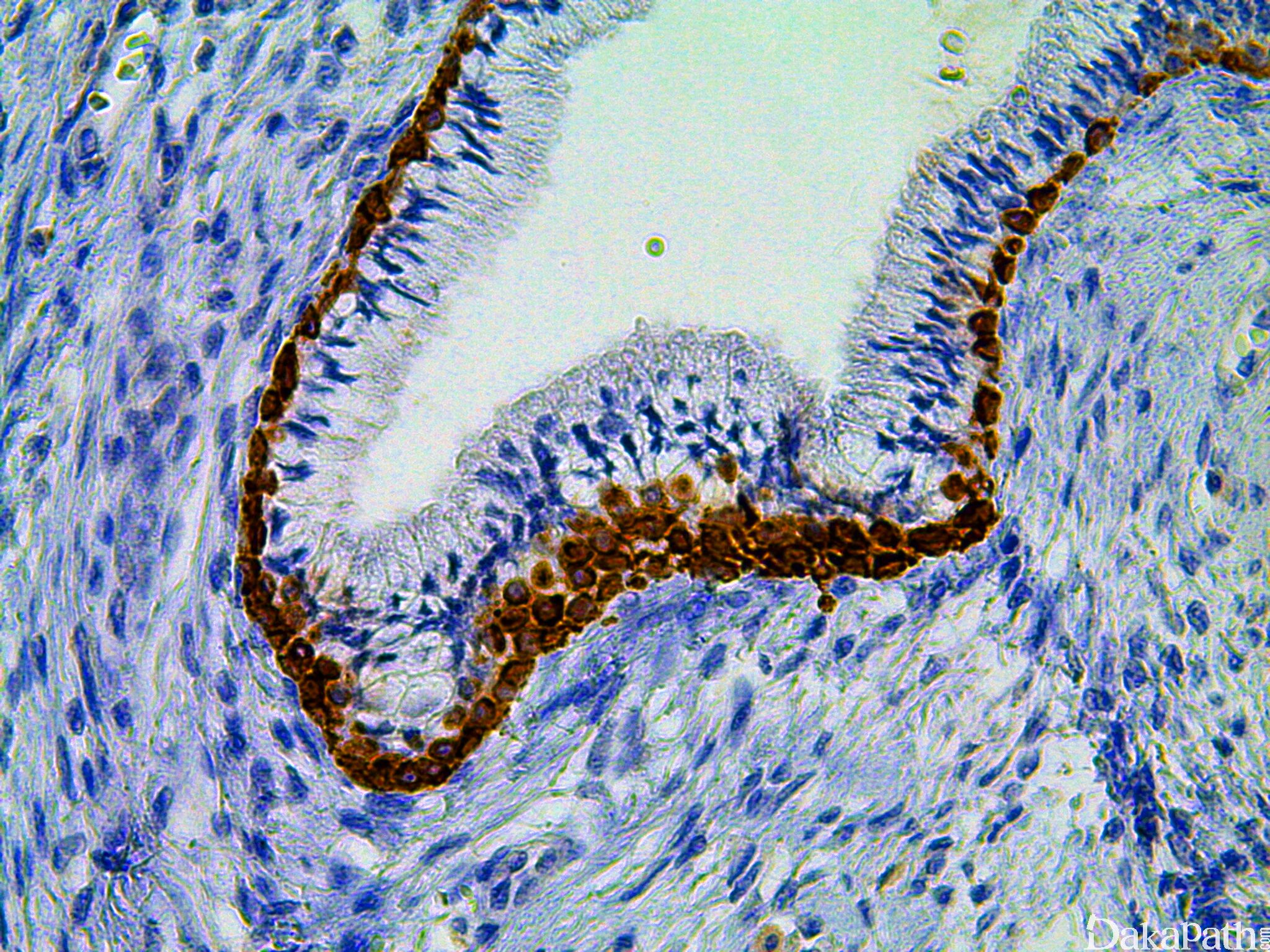 几乎全部阳性(≥95%的病例阳性): 上皮肌上皮癌、腺样囊性癌、乳腺基底样导管内癌、黏液表皮样癌,低级别、甲状腺滤泡型乳头状癌、颅咽管瘤,造釉细胞瘤型、肛管鳞状细胞癌、肛管鳞状细胞癌、皮肤附属器透明细胞癌