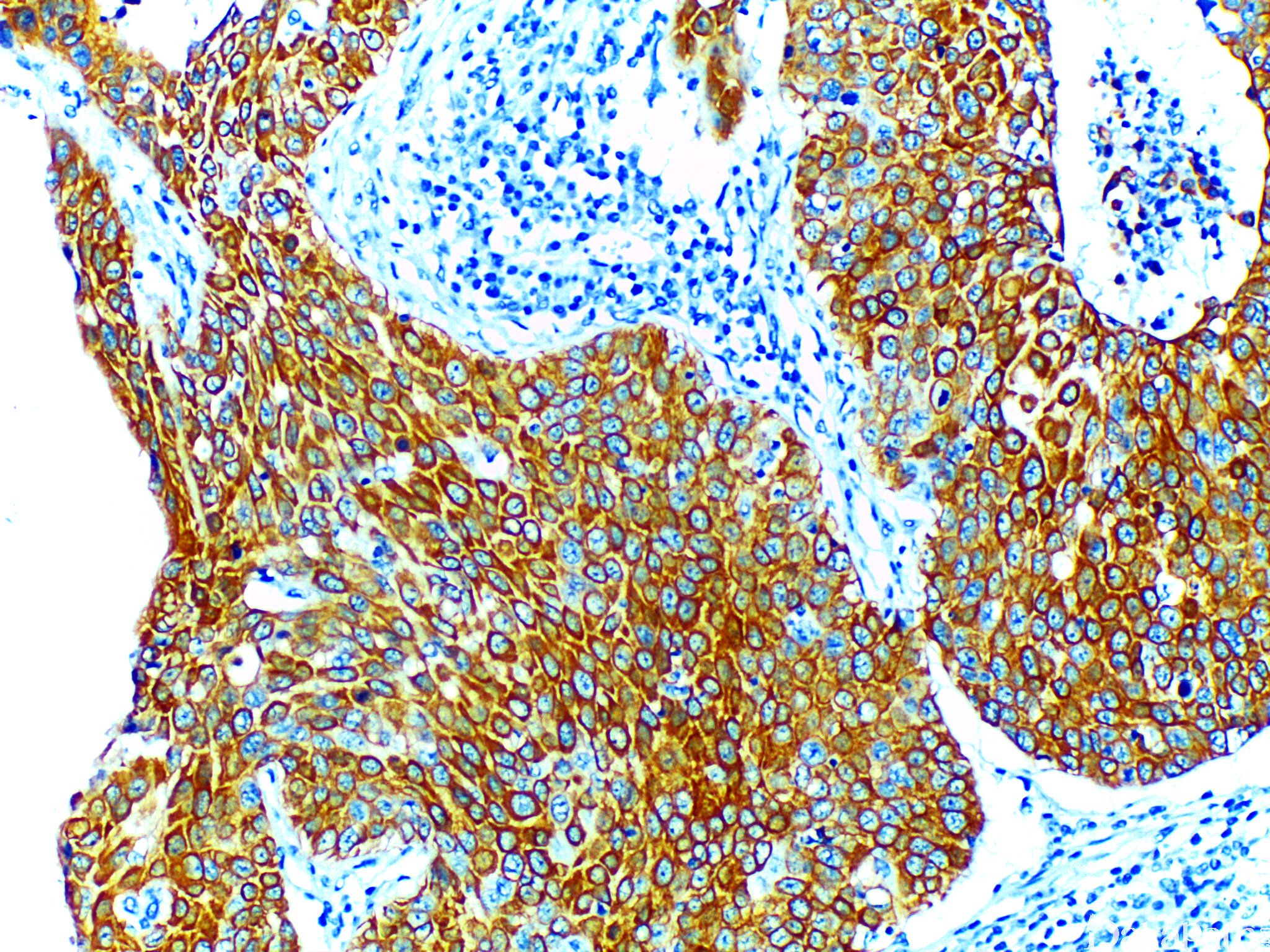 通常阳性(<95%,≥75%的病例阳性): 上皮样间皮瘤、间皮瘤,NOS、乳腺化生性癌、甲状腺间变性癌、肺鳞状细胞癌、脊索瘤、乳腺囊性高分泌型导管内乳头状癌、乳腺髓样癌
