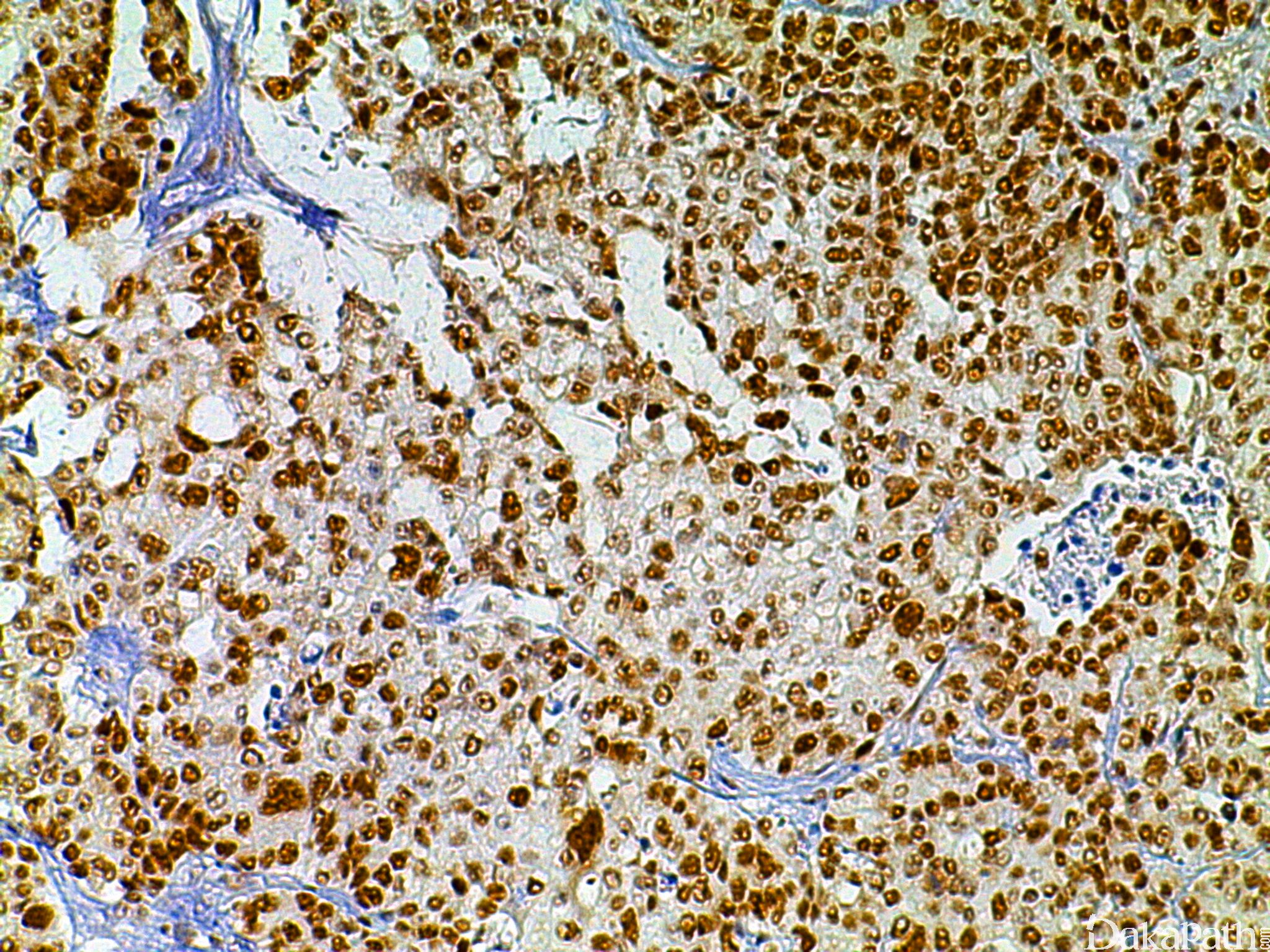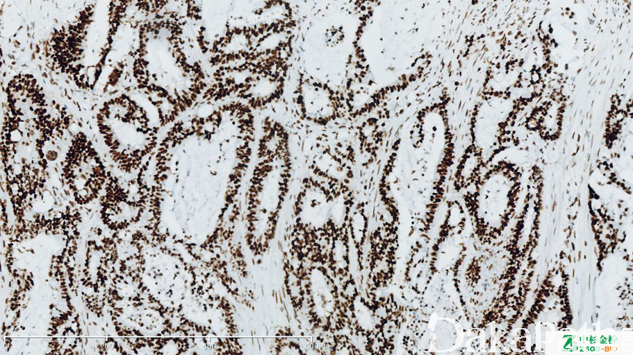 通常阳性(<95%,≥75%的病例阳性): 结直肠腺癌、恶性混合性苗勒管肿瘤,间质成分、子宫癌肉瘤、壶腹腺癌,胰胆管型、子宫内膜腺癌、小肠腺癌、结直肠淋巴上皮瘤样癌