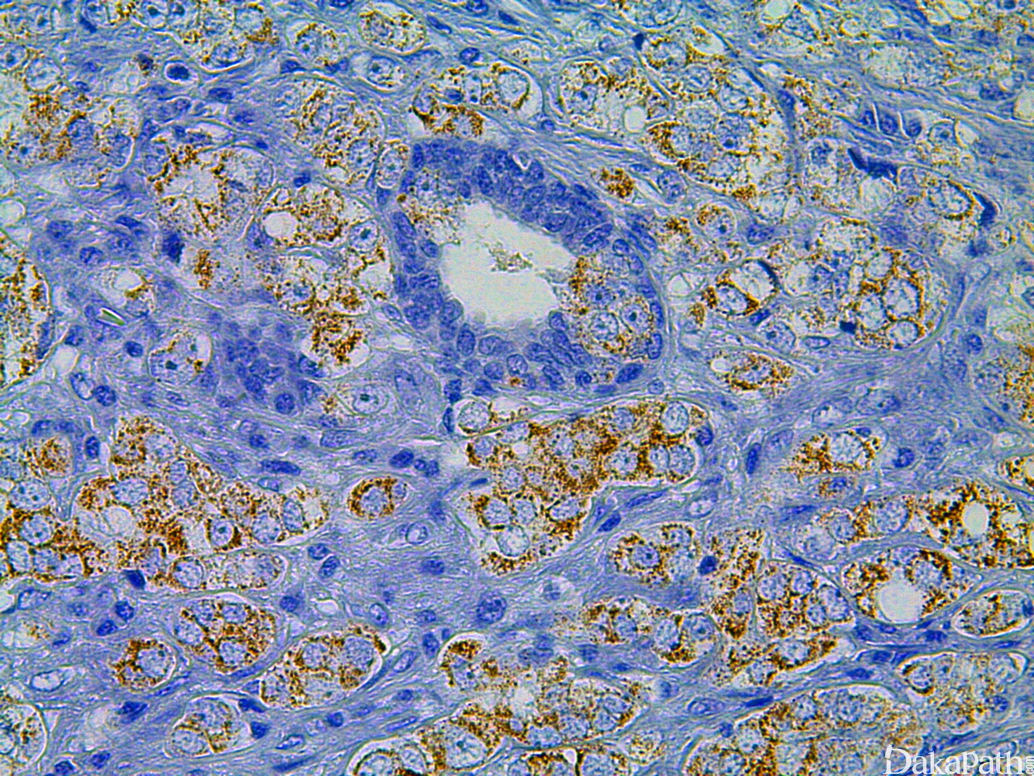 偶尔阳性(<15%,≥5%的病例阳性): 甲状腺乳头状癌、壶腹腺癌、黄色瘤、前列腺基底细胞增生、中肾腺瘤、尿路上皮癌、前列腺非典型腺瘤性增生