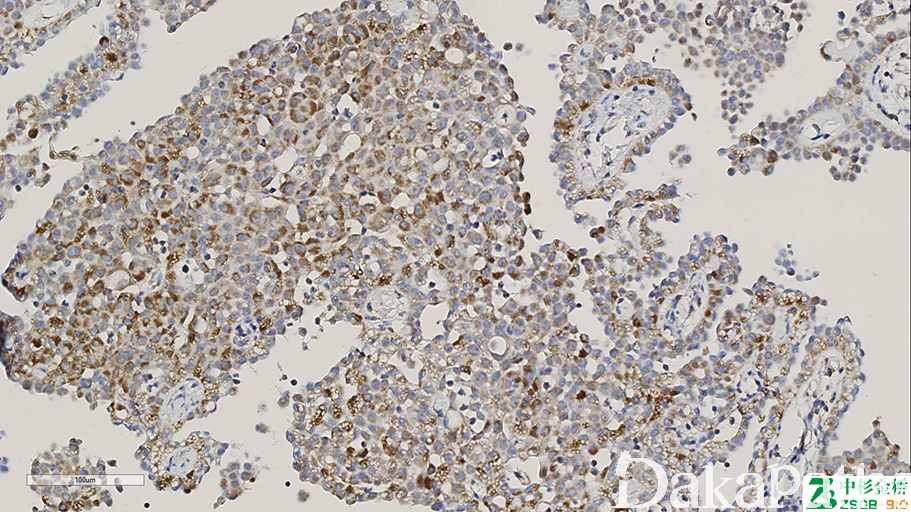正常细胞普遍核表达 SDHB,异常表达缺失。