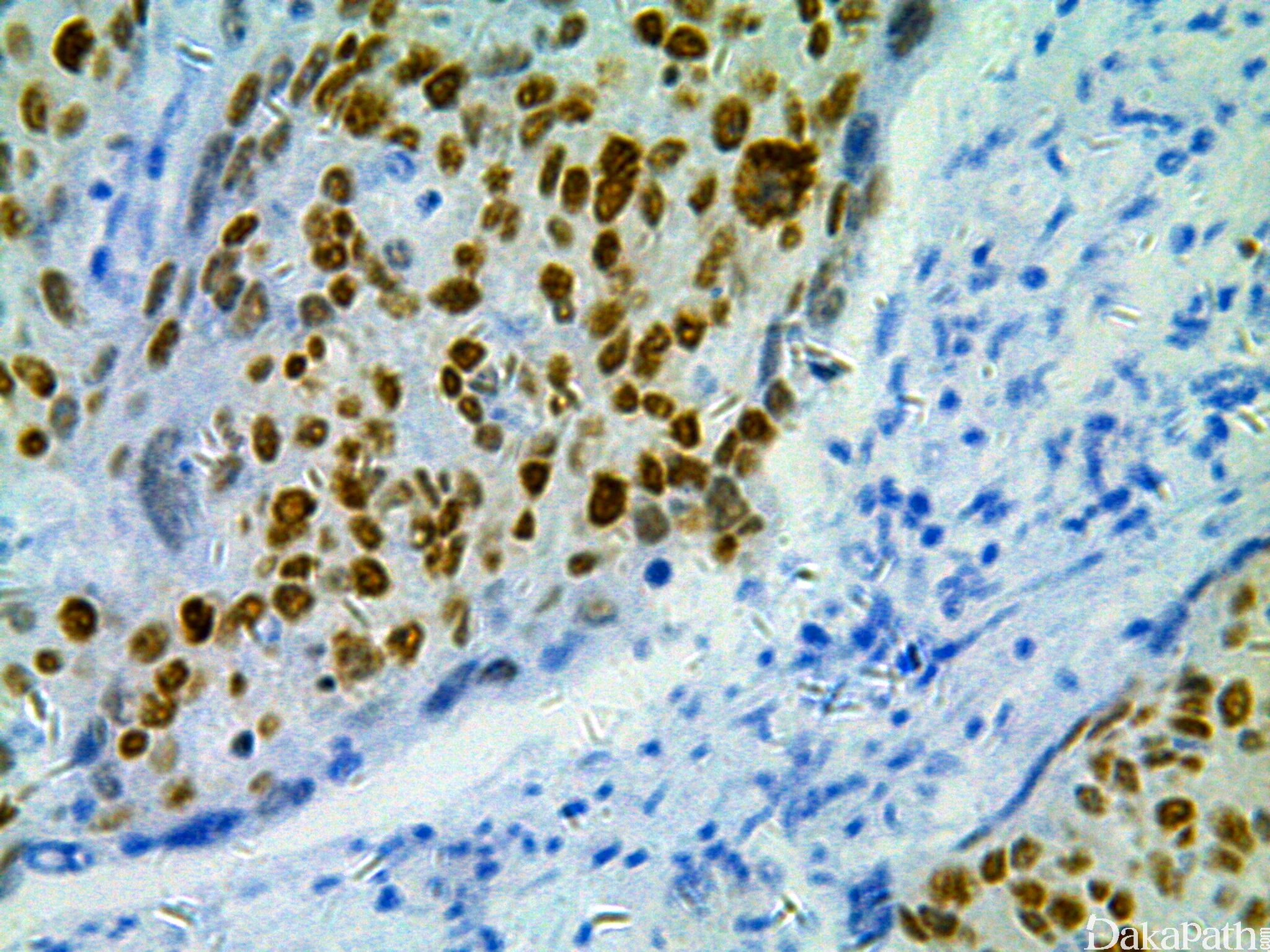 通常阳性(<95%,≥75%的病例阳性): 恶性外周神经鞘膜瘤、卵巢不成熟畸胎瘤、胚胎性癌、肺鳞状细胞癌、卵巢黏液性癌、基底样鳞状细胞癌、卵巢浆液性交界性肿瘤/非典型增生性浆液性肿瘤、卵巢浆液性癌、肺大细胞神经内分泌癌、肺小细胞癌、肺腺癌