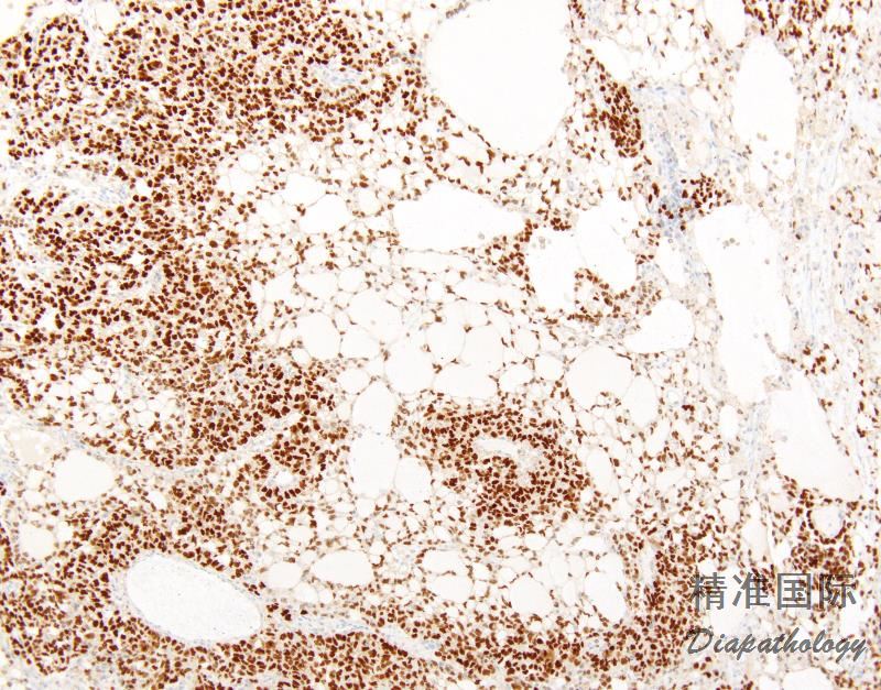 AFP 弥漫或灶状阳性;a-antitrypsin 弥漫或灶状阳性。