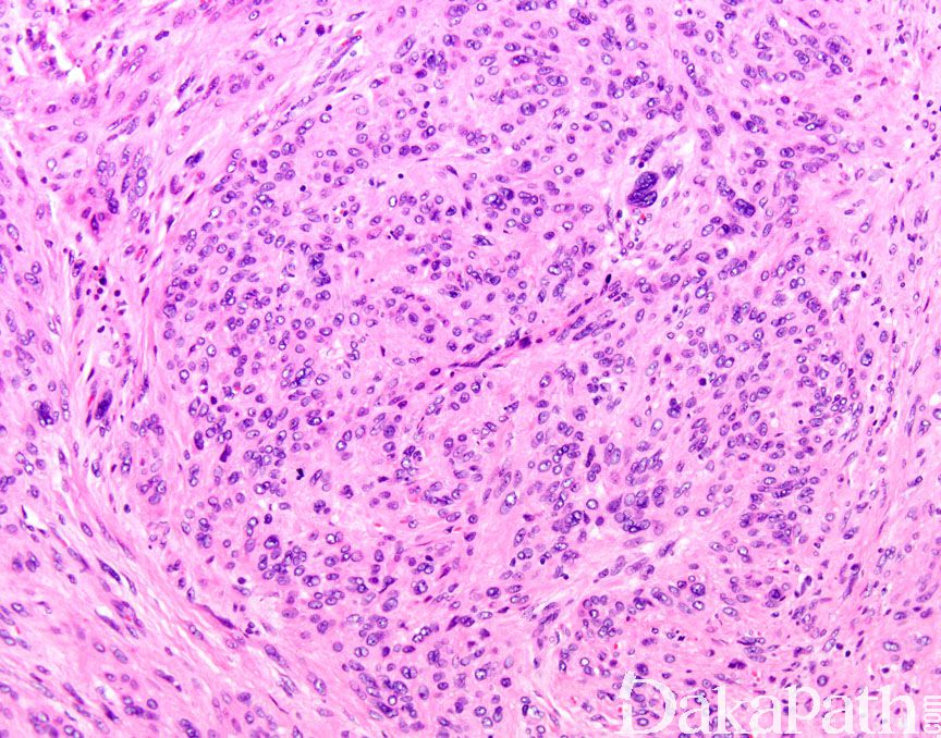 无或轻度异型,核分裂像 ≤10/10HPF,有凝固性坏死;