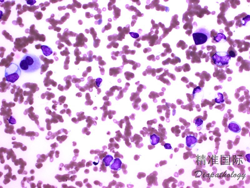 形态学:外周血或骨髓中髓系母细胞增高(≥20%),多系异型增生,如髓系发育异常可表现为少颗粒或低分叶粒细胞、红系发育异常可见巨幼细胞样改变或多核、巨核发育异常表现为微巨核或不分叶等。如仅根据形态学(发育异常)诊断 AML-MRC,发育异常细胞的比例至少要达 50%,且至少累及两系。对于发育异常细胞少于 50%的病例(包括那些非原始细胞很少的病例),需要有细胞遗传学证据或有 MDS 或 MDS/MPN 病史才能诊断。