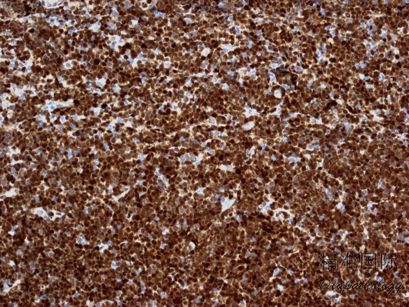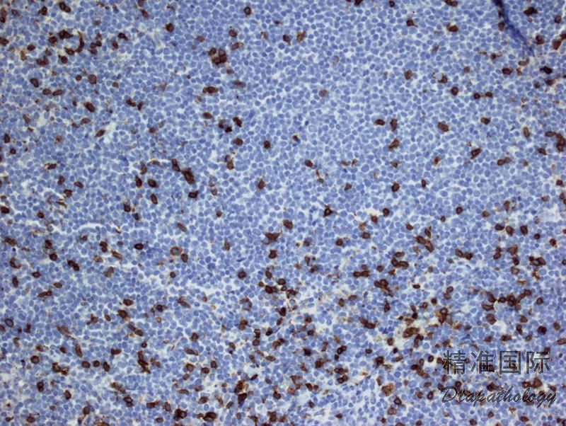 9. 小细胞型套细胞瘤:细胞与小细胞淋巴瘤类似,无幼淋巴细胞或副免疫母淋巴细胞,cyclin D1 阳性。