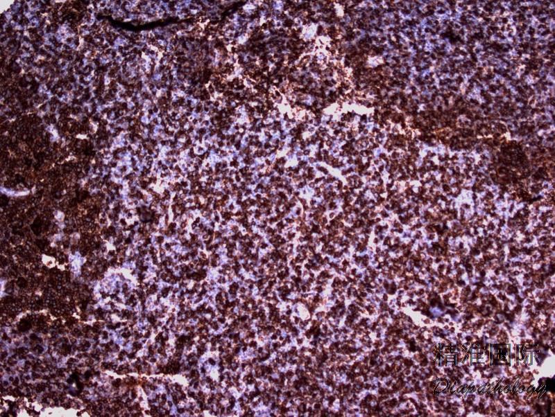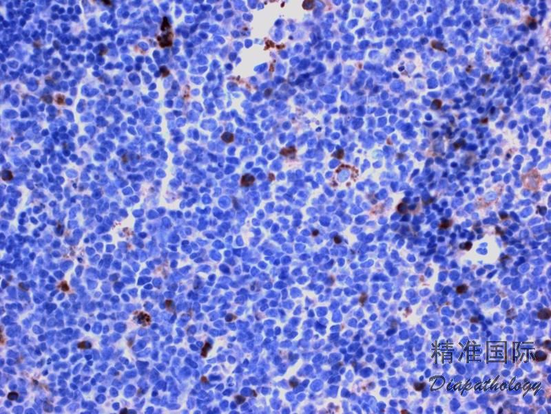 - 免疫表型:表达 B 细胞抗原,近半数病例合表达 CD43, 强表达单克隆轻链。一般 Bcl-2 阳性,少数病例表达 CD5,一般不表达 CD10 和 Bcl-6。75%病例 MNDA+和 IRTA1+(滤泡淋巴瘤阴性)。
