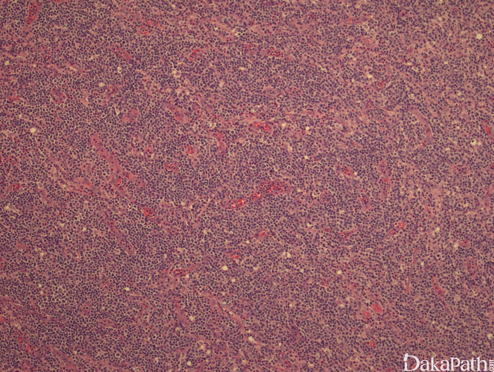 - 淋巴结正常结构消失,代之以弥漫肿瘤增生,有时增生以副皮质区为主。背景血管增多,主要是高内皮小静脉,分枝丰富。皮肤常侵犯真皮和皮下,呈弥漫侵润或形成结节。骨髓为间质弥漫或局灶浸润。