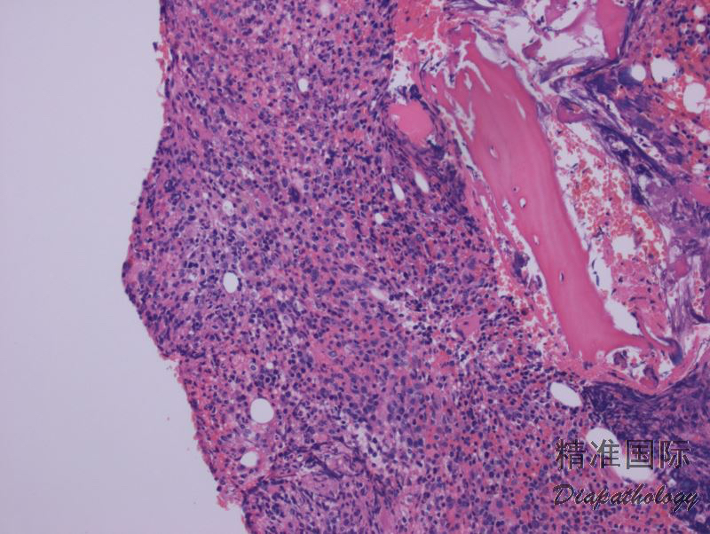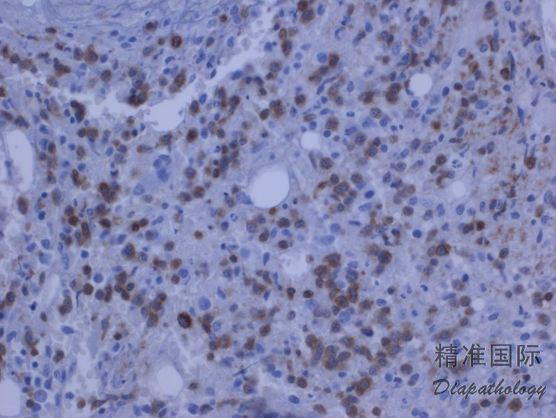 5. 免疫表型:肿瘤细胞 CD3+,CD2+,CD5+,CD4+,CD25+,CD7-;极少数病例 CD4-/CD8+,CD4+/CD8+,CD4-/CD8-。