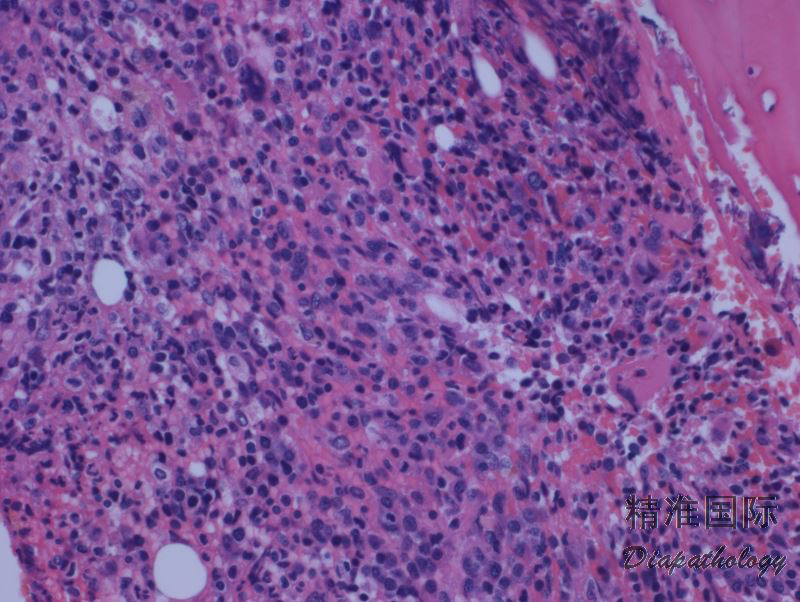 3. 外周血肿瘤细胞多少不等,从少量(焖燃型)到显著升高(急性型)。淋巴结类似白血病样侵润,窦内侵犯也常见。皮肤呈血管周围侵润,常累及表皮,有时真皮广泛侵润形成肿瘤结节并延至皮下。