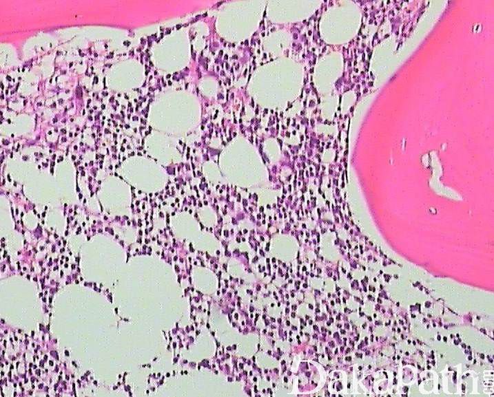 1. 骨髓活检:细胞密度通常增高 或正常(少数减低),巨核细胞异型性常更明显,原始细胞可以正常或不同程度增高(<20%)。
