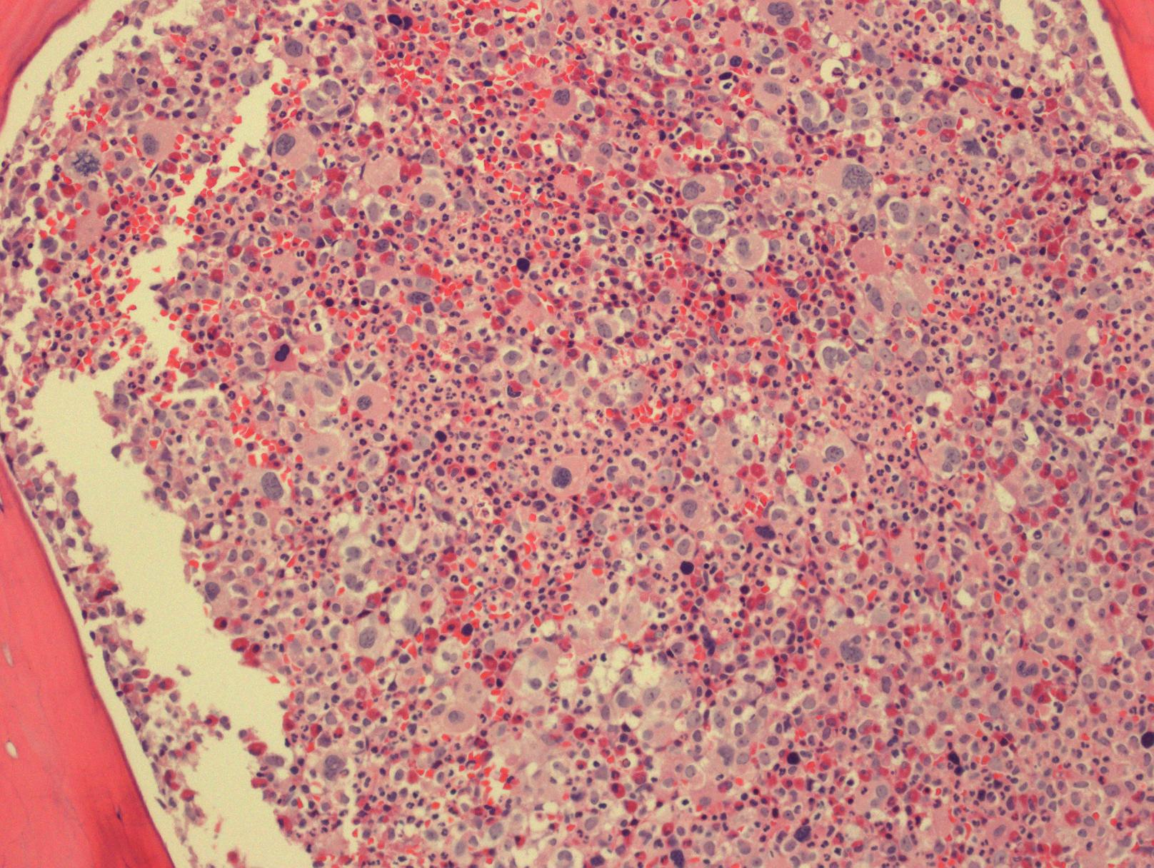 细胞密度/增生程度通常显著增高(> 95%);仅表现为血小板增高的病例细胞密度可正常或轻度增高;