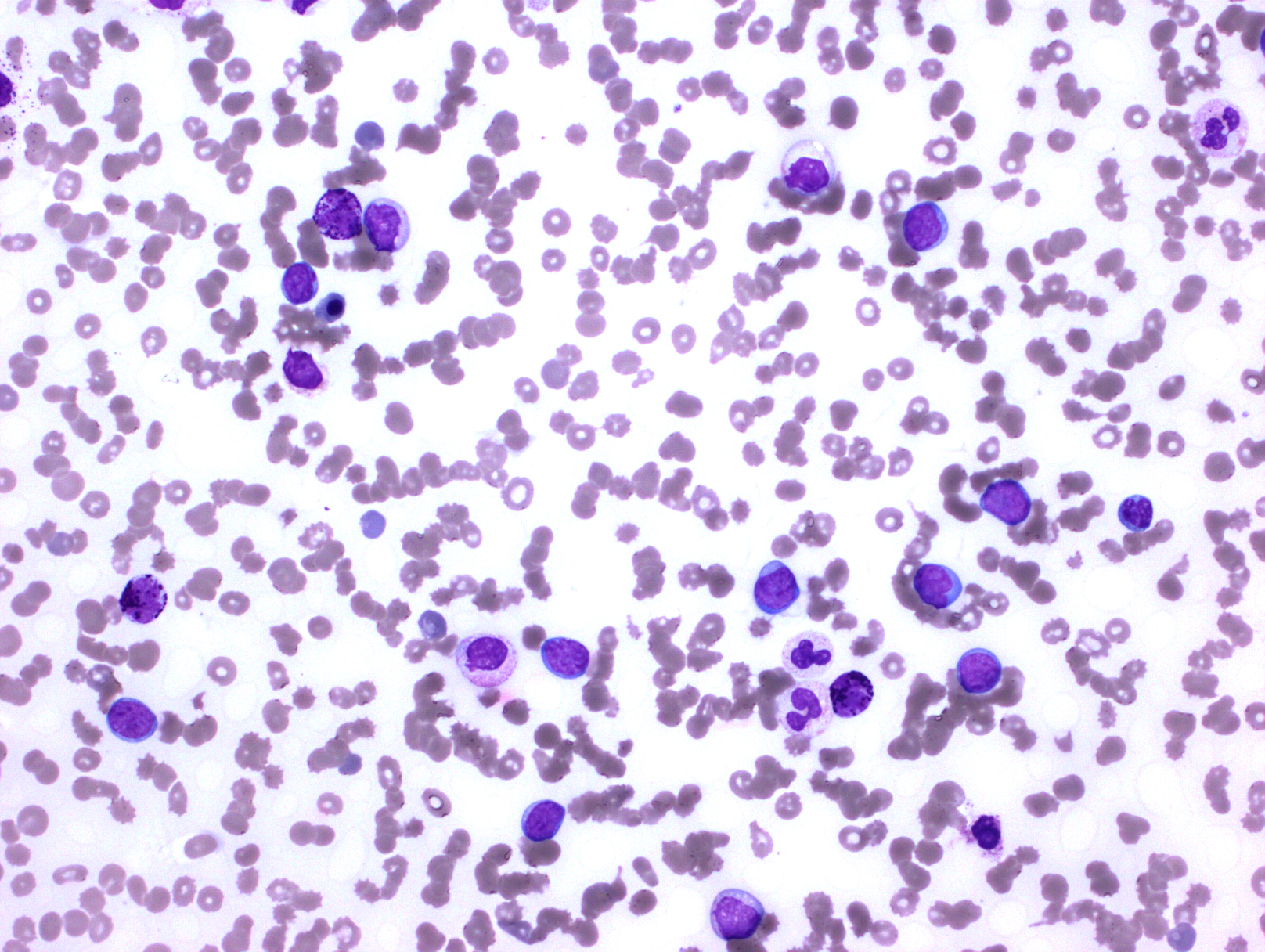 20-30%母细胞期患者原始细胞为淋巴母细胞(通常为 B 淋巴母,但也有 T 淋巴母和 NK 细胞的报道)。