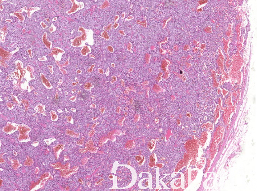 绝大多数包膜完整,仅少数缺少完整的结缔组织包膜,少数病例可发生囊性变;