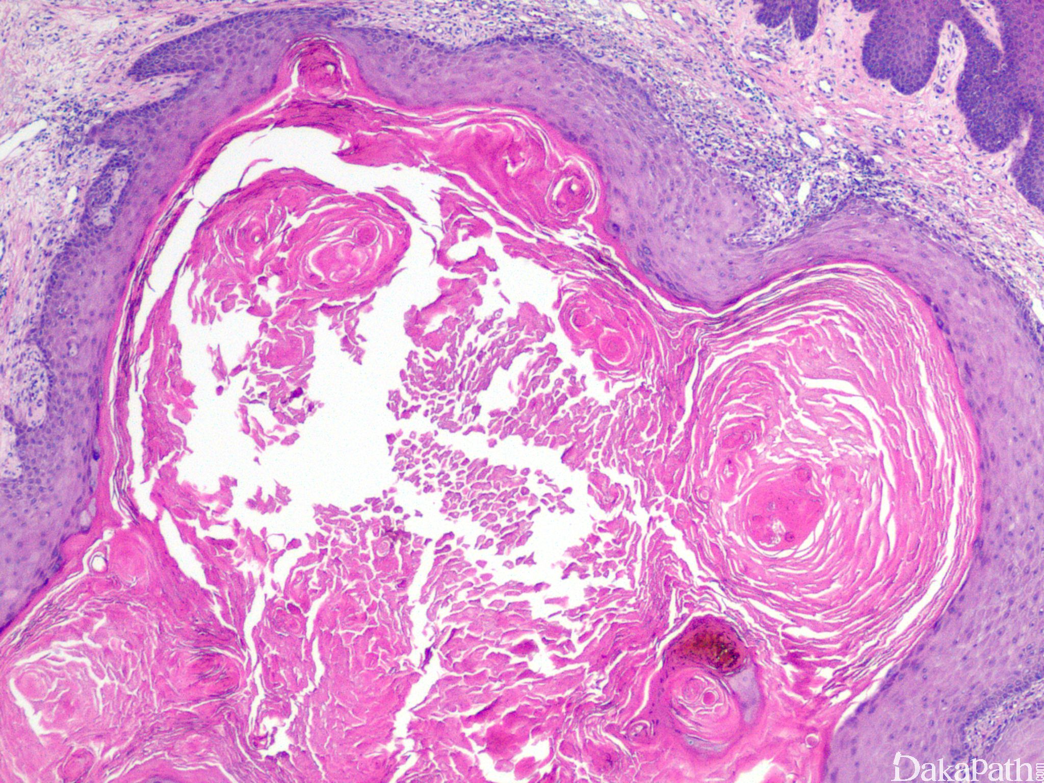 高分化者细胞仅轻到中度异型,往往具丰富的嗜酸性胞质,角化现象明显;
