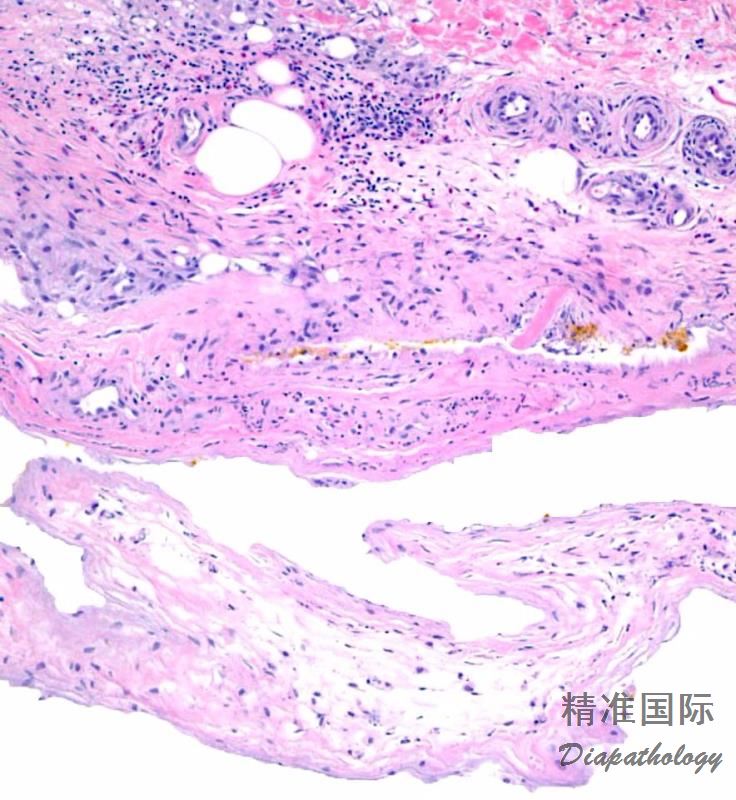 周围血管病变引起的脂膜炎常见中年或老年肥胖的女性下肢对称的硬斑, 有萎缩及色素沉着