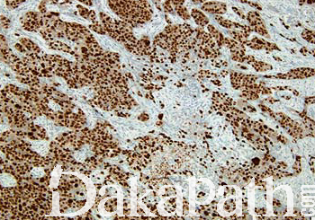 鳞状细胞癌:可见细胞间桥和角化,免疫组化染色较少表达 GATA3。