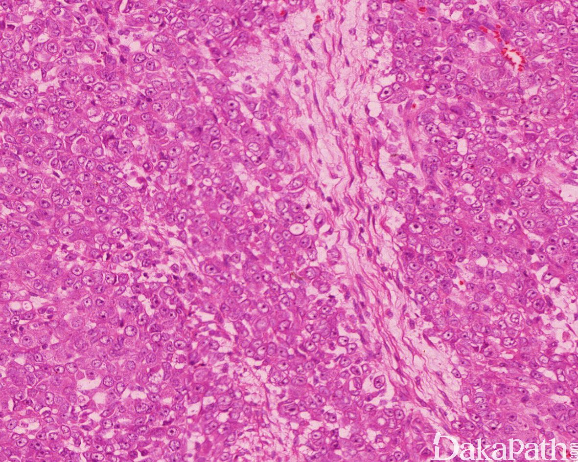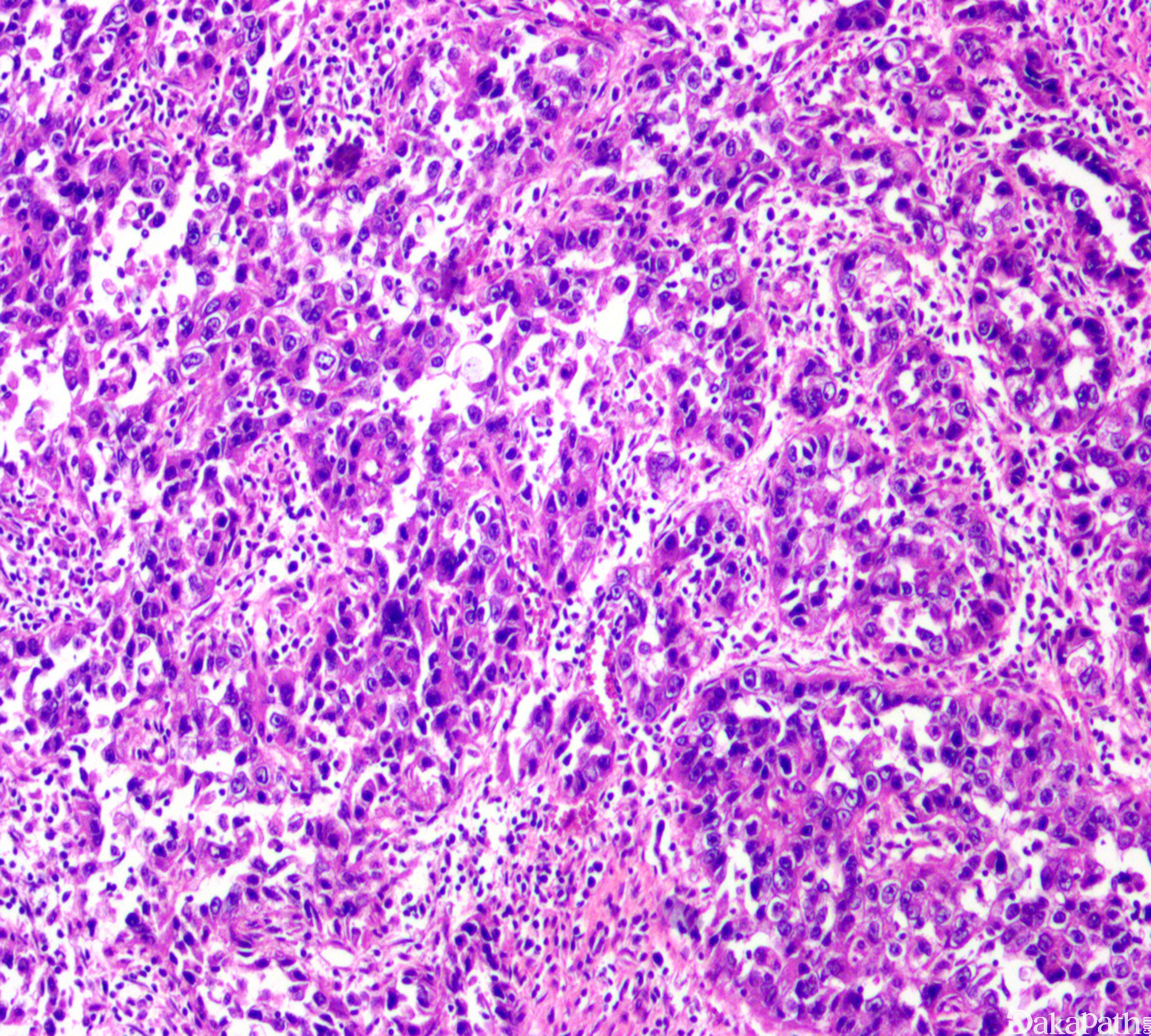 肿瘤可由具有不同分化程度的乳头状、小梁状及腺性结构以及实性片状混合构成;