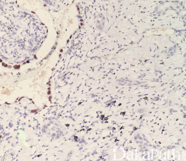 鳞状细胞癌成分 p63. p40. CK5/6 阳性,腺癌成分 Napsin A、TTF1. CK7 等常阳性,对于分化差的,单纯形态学诊断有困难的病例可免疫组织化学染色辅助诊断。