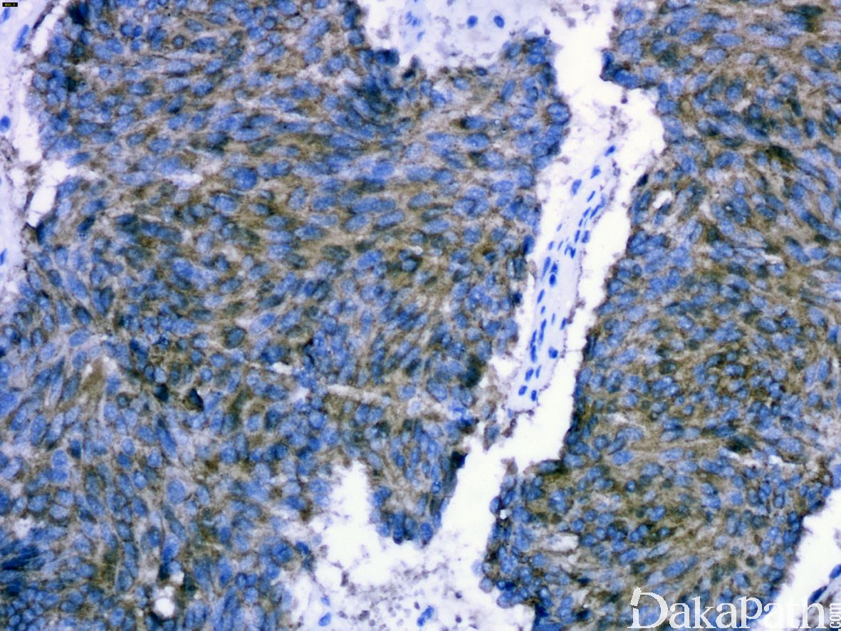 NSE、CgA、、Syn、CD56. CD99 以及 CK(AE1/AE3)常阳性,不表达 CK7. CK20. PAX2. PAX8 等标志物。