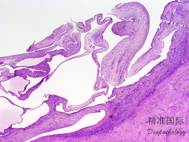 无未分化间叶性成分,如有,则诊断为囊性部分分化性肾母细胞瘤;