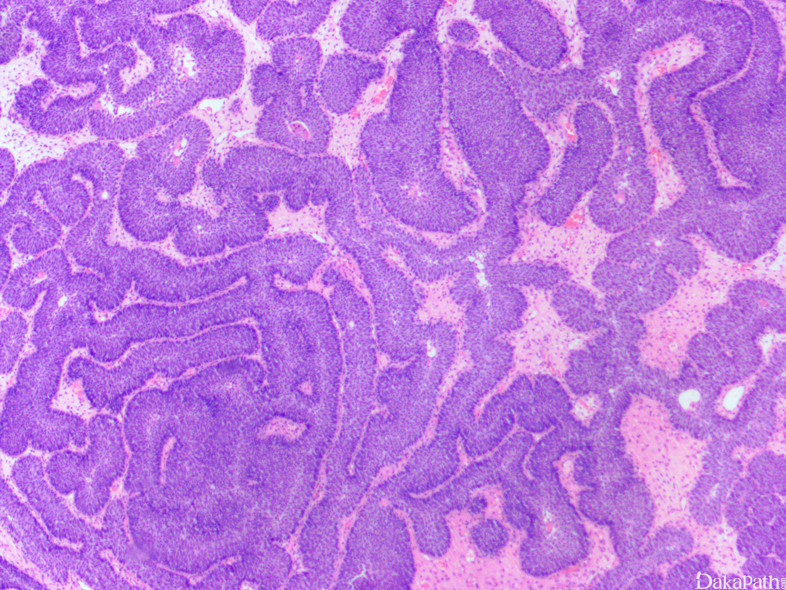 复杂的交织状内翻性生长的尿路上皮肿瘤,无或仅有轻度的细胞非典型性