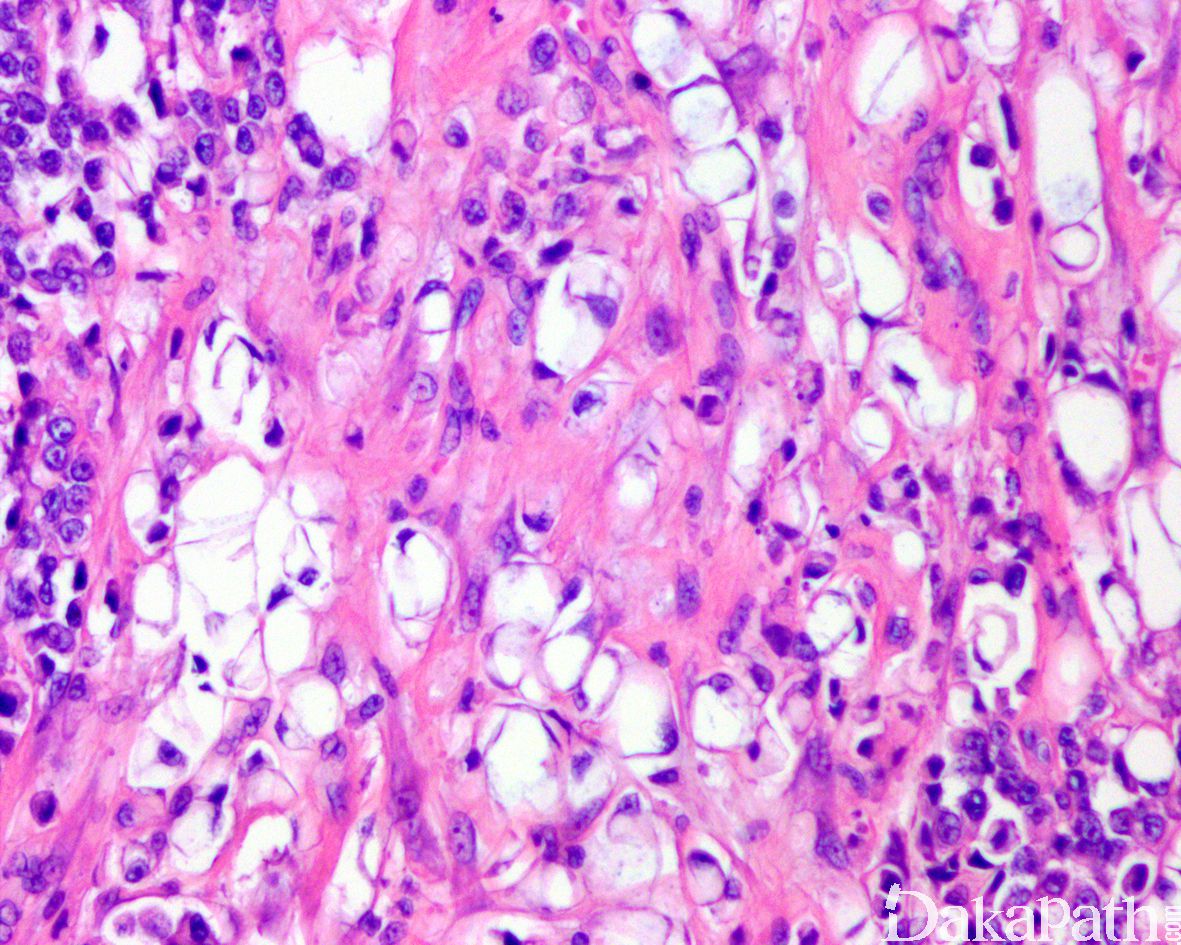 印戒细胞癌 :无尿路上皮癌成分,存在胞浆内黏液。
