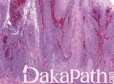 - 组织学上表现为外生性、指状乳头样或具有上皮角化和乳头状瘤病的“疣状”肿块;