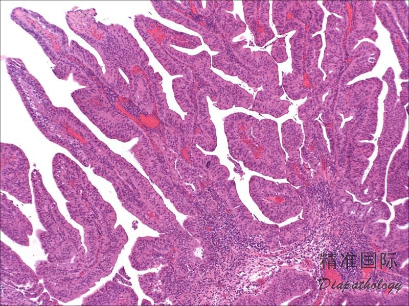 尿路上皮癌伴绒毛腺管状分化:混有普通的高级别尿路上皮癌;