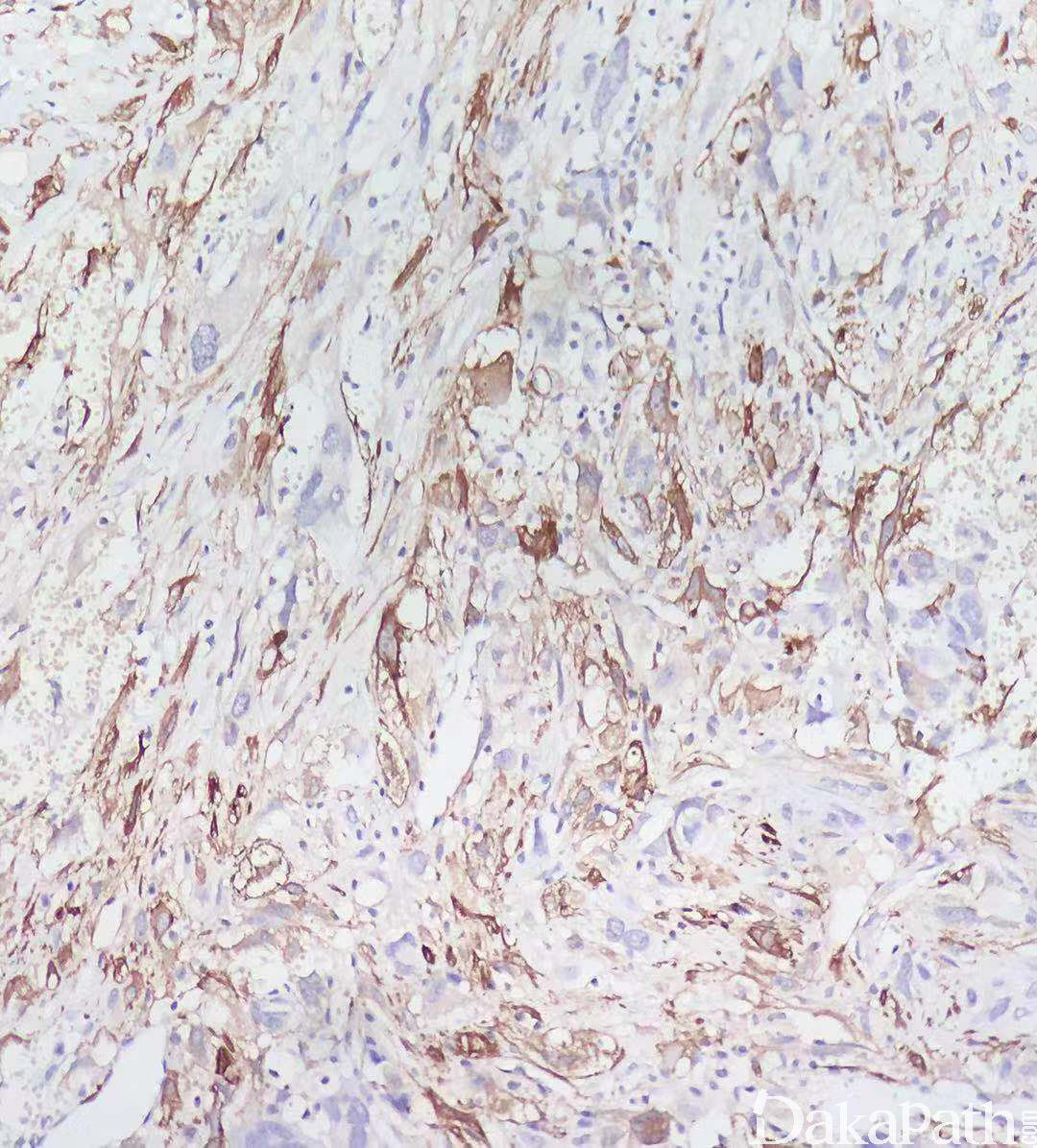α-SMA、MSA(HHF3 5)、h-caldesmon 和 calponin、P16 弥漫强阳性,多数病例 desmin 阳性,半数左右可表达 CD34(通常比较局灶),少数病例可表达 S100 和 EMA,CDK4 和 MDM2. HMB45. CD117 等阴性。