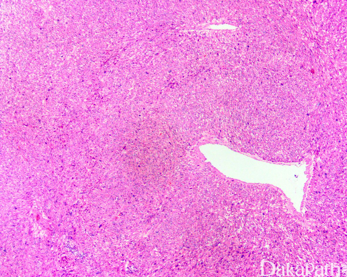 主要由平行束状或编织排列的嗜伊红色梭形细胞组成;