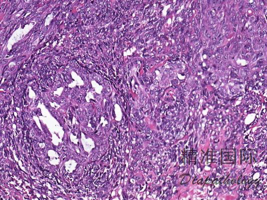 6)此型肿瘤恶性度高,易转移,5 年生存率低,预后差。