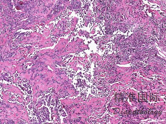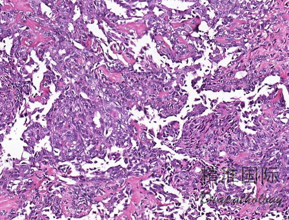 - 硬化性滑膜肉瘤:主要表现为细胞团索之间有大量的条索状胶原纤维,胶原纤维束或条索间可见上皮性或梭形瘤细胞。