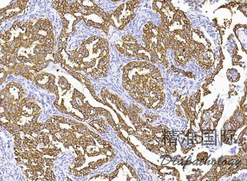 - 免疫组织化学染色:上皮性标志物抗体:CK、EMA、CK7. CK8. CK14. CK18. CK19 阳性;间叶性标志物抗体:VIM 阳性;不同程度表达 CD99. S100. SMA、calponin、h-caldesmon、MSA;多不表达 CD34. desmin;