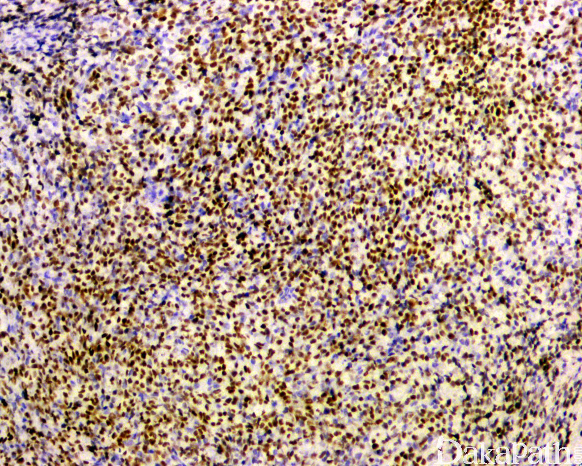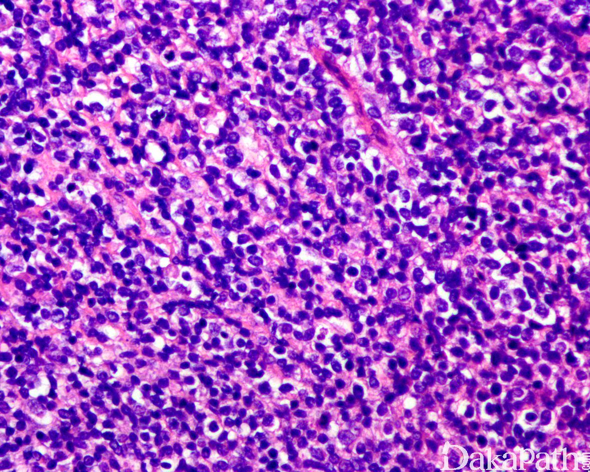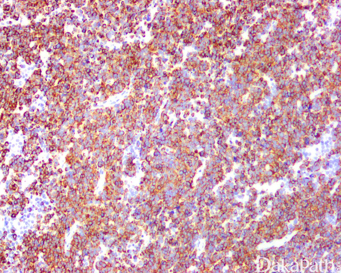 4. 淋巴瘤: CD45 阳性,desmin、myogenin、myo-D1 为阴性,并表达 1 中或多种 T 或 B 细胞分化抗原;