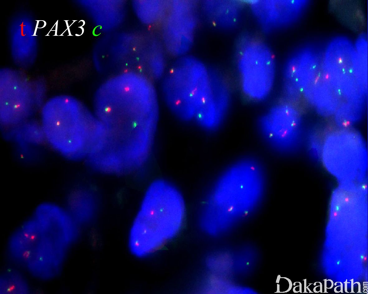 3. Nishio J, Althof PA, Bailey JM, et al. Use of a novel FISH assay on paraffin-embedded tissues as an adjunct to diagnosis of alveolar rhabdomyosarcoma. Lab Invest. 2006;86:547–556.
