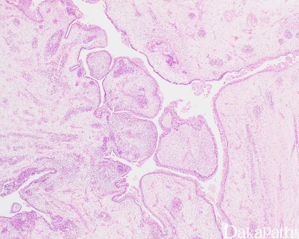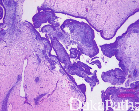 - 低倍镜下呈宽乳头状或分叶状;