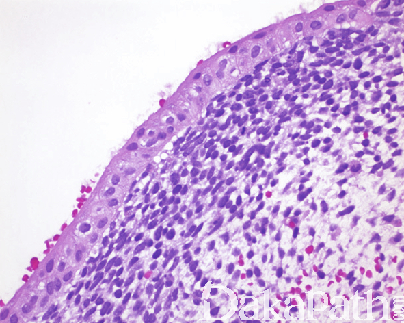 - 在紧靠黏膜上皮的下方由深染密集的瘤细胞形成一宽带状区域,数层至十数层,称为“形成层”;