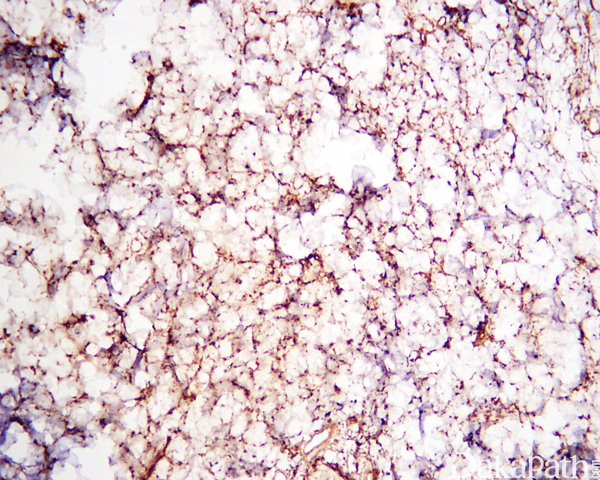 纤维母细胞表达 vimentin、CD34 和 CD99,一般不表达 α-SMA、MSA、S100 蛋白和 desmin。