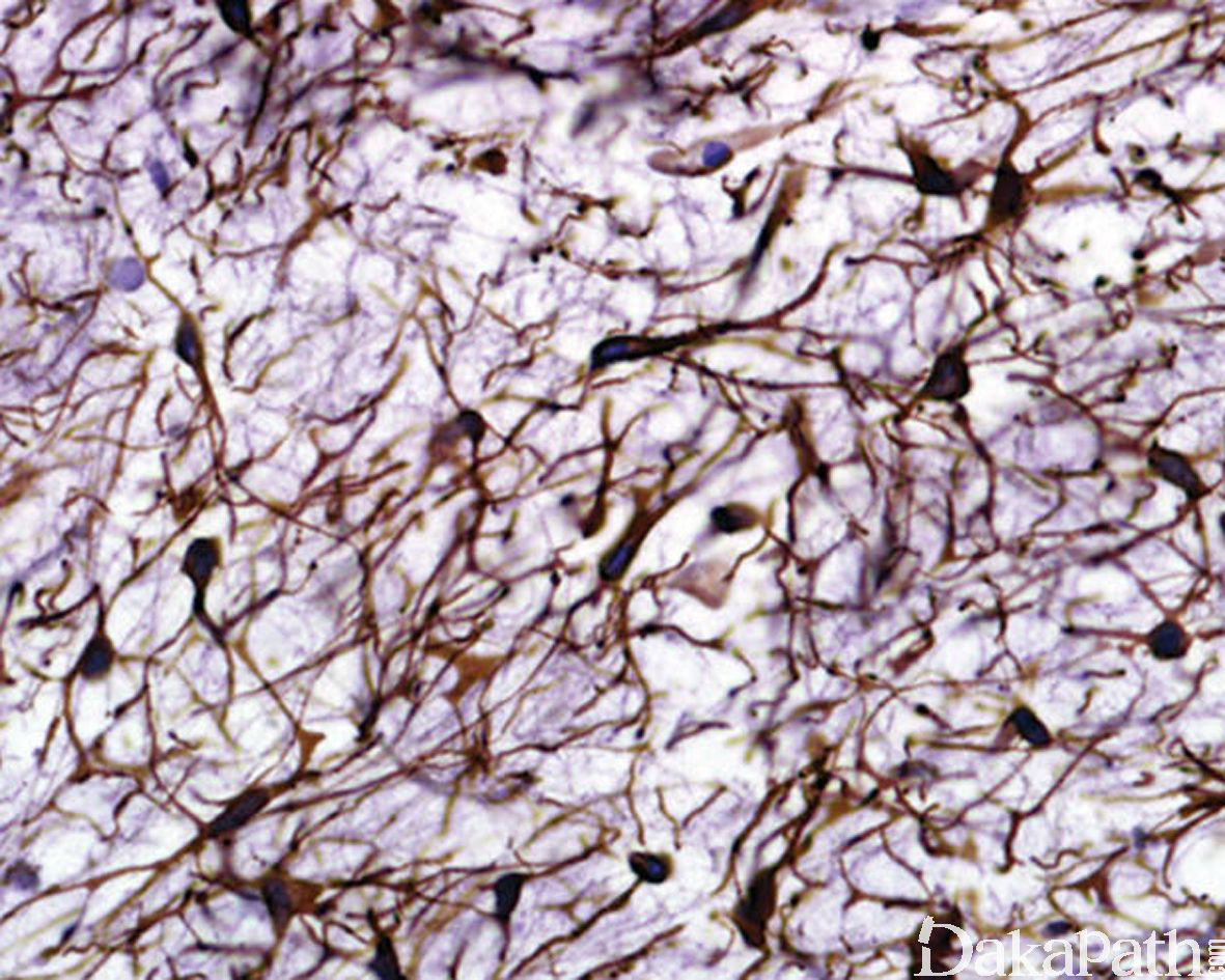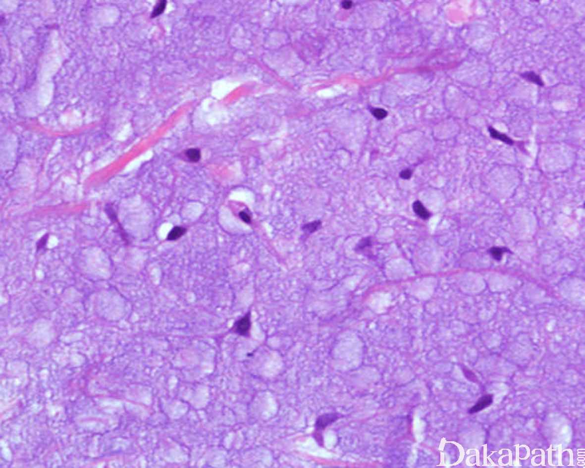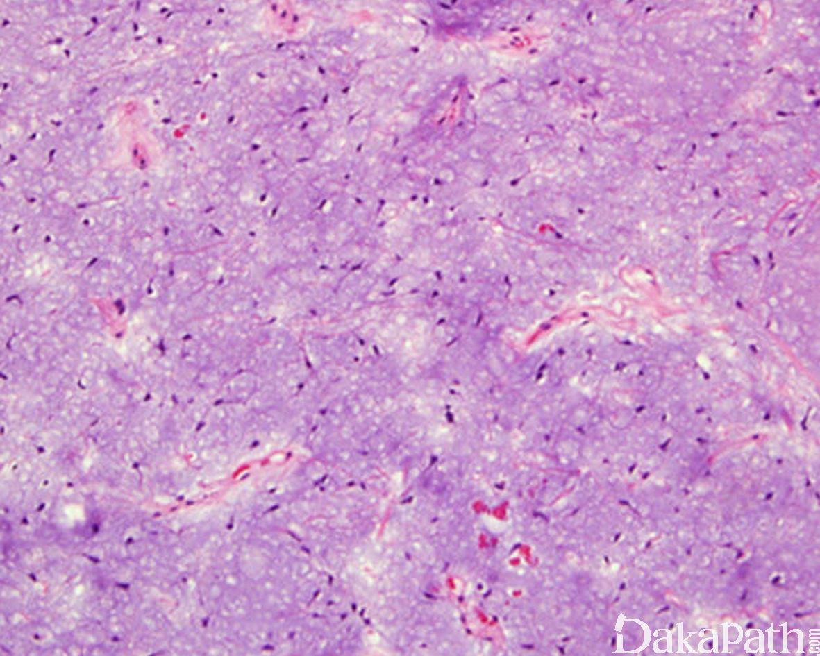 黏液样区内的梭形细胞或星芒状细胞核小而深染,胞质细长呈树突状;