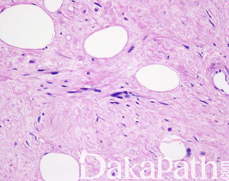 - 由分化良好的脂肪肉瘤和分化良好平滑肌肉瘤两种成分组成,常交错分布,两者的比例多少不等;