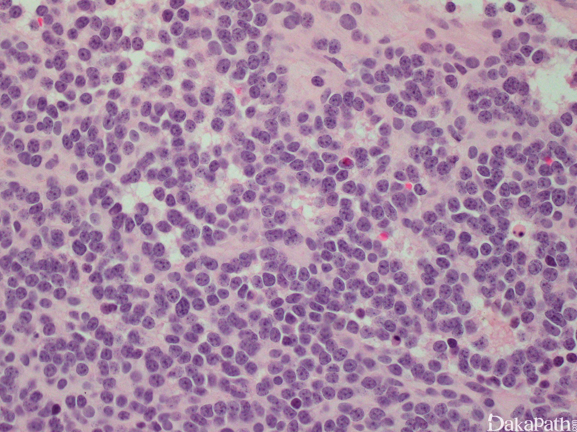 9. 髓外浆细胞瘤 (Extramedullary Plasmacytoma)  浆样细胞含有仪表盘样核染色质分布,核周空晕。CD138, CD79a, κ 或  λ 限制性表达呈阳性。上皮及神经内分泌标记呈阴性。