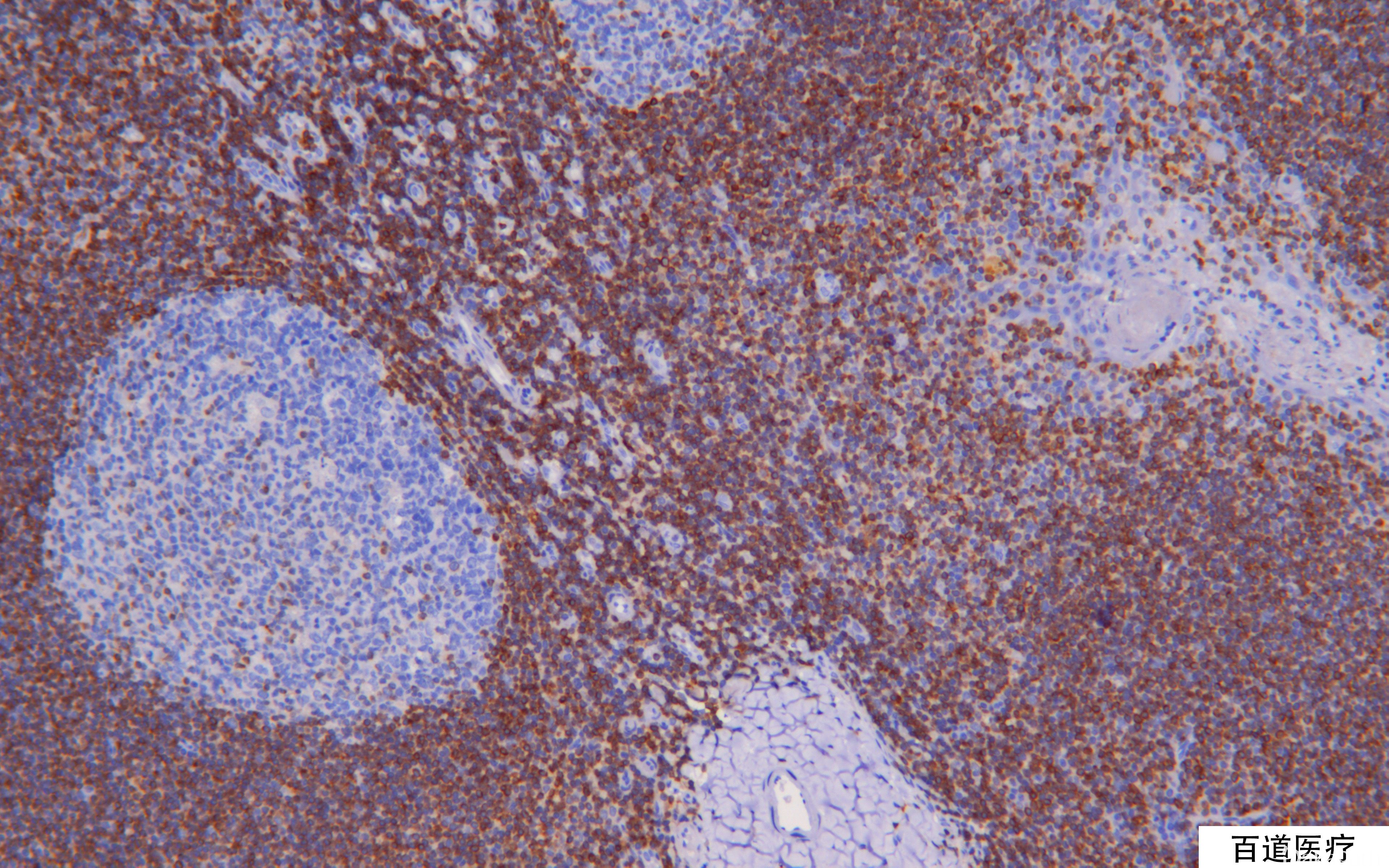 3. 单核样 B 细胞增生(阴性)与边缘区淋巴瘤(阳性)的鉴别;