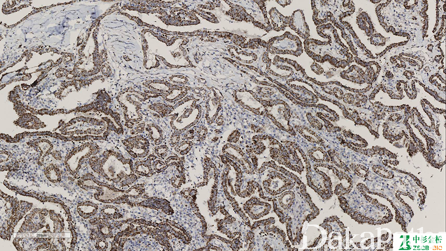 几乎全部阴性(<5%的病例阳性): 卵巢子宫内膜样癌、皮肤鳞状细胞癌、甲状腺髓样癌、食管鳞状细胞癌、胃肠道间质瘤、卵巢高级别浆液性癌、卵巢黏液性癌、食管腺癌、胆囊腺癌、卵巢透明细胞癌、胃腺癌,胃底、肝内胆管细胞癌、胃腺癌