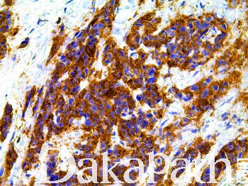 偶尔阳性(<15%,≥5%的病例阳性): 恶性黑色素瘤、肝细胞癌、胰腺腺泡细胞癌、透明细胞肾细胞癌、肺大细胞癌、尤文肉瘤、肺鳞状细胞癌、T 细胞淋巴瘤、上皮样肉瘤、皮下脂膜炎样 T 细胞淋巴瘤